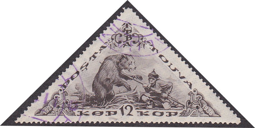 Visibility: public Image owner: none postage 12k dkbrn issue=15th Anniversary of People's Republic of Touva wmk=Greek border & rosettes Crops No visible images cropped from this one. Measurements Resolution is unknown. Source Source name: Colnect File URL: http://i.colnect.net/b/1932/506/Hunter-and-Bear.jpg Uploaded January 25, 2014, 4:17 pm by Stan Shebs |