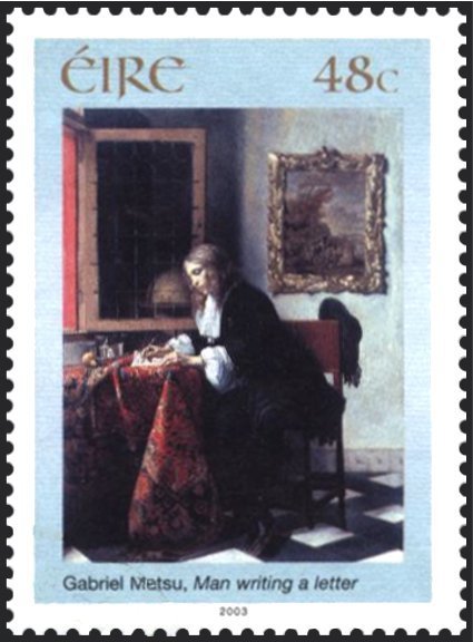 Visibility: public Image owner: none postage 9/9/2003 48c multi issue=150th Anniversary of the Irish National Gallery d=Gabriel Metsu - Man writing a letter unwmk Crops No visible images cropped from this one. Measurements Resolution is unknown. Source Source name: Colnect File URL: http://i.colnect.net/b/1902/357/Gabriel-Metsu---Man-writing-a-letter.jpg Uploaded February 4, 2014, 9:49 pm by Stan Shebs |