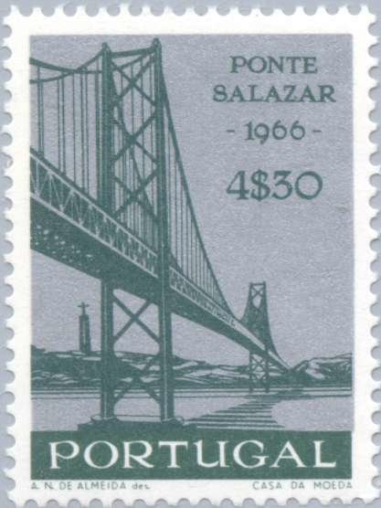 Visibility: public Image owner: none postage 8/6/1966 4.30e sil&dkgrn issue=Salazar Bridge opening d=Salazar Bridge unwmk perf=13.5 Crops No visible images cropped from this one. Measurements Resolution is unknown. Source Source name: Colnect File URL: http://i.colnect.net/images/b/171/290/Inauguration-of-Salazar-Bridge.jpg Uploaded August 21, 2014, 9:23 pm by Stan Shebs |