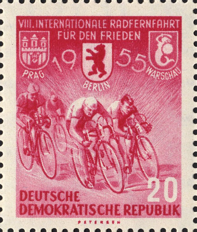 Visibility: public Image owner: none postage 4/18/1955 20pf red issue=8th Peace Race wmk=DDR & posthorn Crops No visible images cropped from this one. Measurements Resolution is unknown. Source Source name: Colnect File URL: http://i.colnect.net/b/1968/032/Peace-cycling.jpg Uploaded February 14, 2014, 6:16 pm by Stan Shebs |