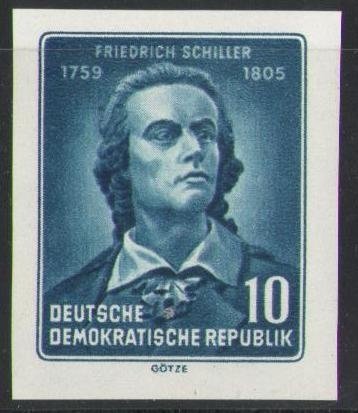 Visibility: public Image owner: none postage 4/20/1955 10pf dkbl issue=Schiller death 150th d=Friedrich von Schiller (1955) wmk=DDR & posthorn imperf Crops No visible images cropped from this one. Measurements Resolution is unknown. Source Source name: Colnect File URL: http://i.colnect.net/b/1968/703/Von-Schiller-Friedrich.jpg Uploaded February 14, 2014, 6:16 pm by Stan Shebs |
