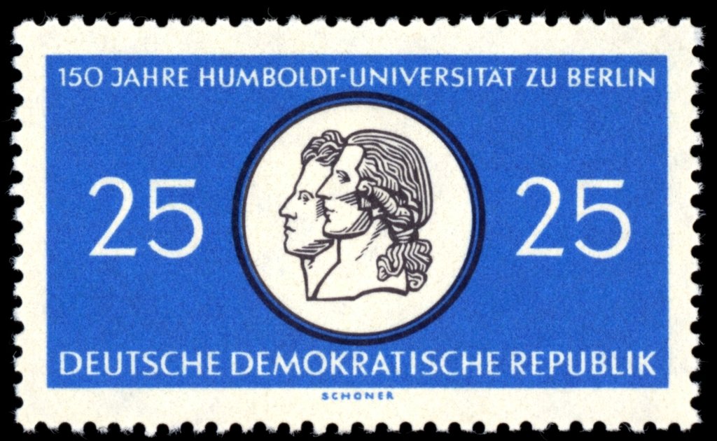 Visibility: public Image owner: none postage 11/4/1960 25pf bl&blk issue=Charite hospital 250th d=Solid plate with the brothers Humboldt Crops No visible images cropped from this one. Measurements Resolution is unknown. Source Source name: Colnect File URL: http://i.colnect.net/images/b/1971/596/Solid-plate-with-the-brothers-Humboldt.jpg Uploaded February 14, 2014, 6:20 pm by Stan Shebs |