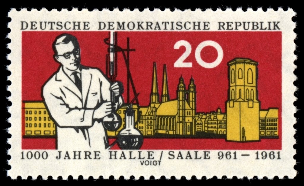 Visibility: public Image owner: none postage 6/22/1961 20pf issue=Halle 1000th d=chemist&Halle towers Crops No visible images cropped from this one. Measurements Resolution is unknown. Source Source name: Colnect File URL: http://i.colnect.net/images/b/1972/554/Scientists.jpg Uploaded February 14, 2014, 6:24 pm by Stan Shebs |