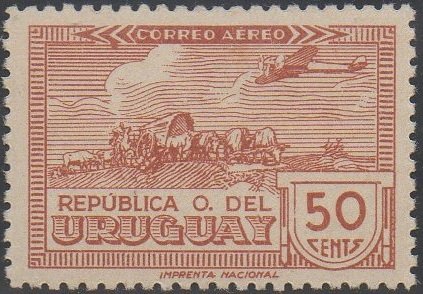 Visibility: public Image owner: none airmail 6/13/1939 50c ltbrn issue=1939 air d=plane over sculptured oxcart wmk=REPUBLICA O. DEL URUGUAY Crops No visible images cropped from this one. Measurements Resolution is unknown. Source Source name: Colnect File URL: http://i.colnect.net/b/1178/156/Plane-over-sculptured-oxcart.jpg Uploaded August 21, 2014, 9:34 pm by Stan Shebs |