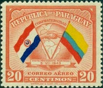 Visibility: public Image owner: none airmail 8/15/1945 20c multi issue=goodwill visits unwmk perf=12.5 Crops No visible images cropped from this one. Measurements Resolution is unknown. Source Source name: Colnect File URL: http://i.colnect.net/images/b/1920/192/Flags-of-Paraguay-and-Ecuador.jpg Uploaded March 2, 2014, 4:56 pm by Stan Shebs |