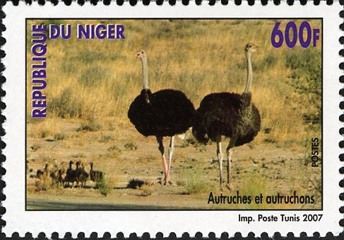 Visibility: public Image owner: none postage 11/9/2007 600fr multi d=ostriches & chicks unwmk perf=13 Crops No visible images cropped from this one. Measurements Resolution is unknown. Source Source name: Colnect File URL: http://i.colnect.net/b/1618/104/Ostrich-Struthio-camelus-with-Juvenile.jpg Uploaded March 4, 2014, 4:41 pm by Stan Shebs |