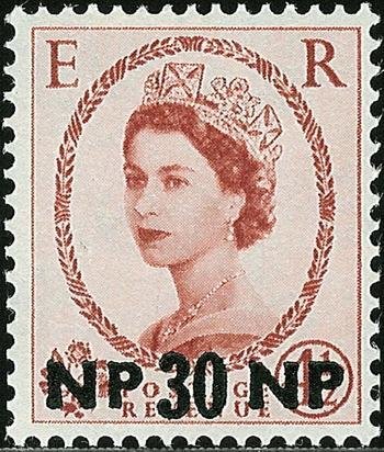 Visibility: public Image owner: none Current identification: postage 4/26/1960 30np copbrn issue=1960 d=Queen Elizabeth II (Wilding c) ovpt=value oc=blk on=issuer=Great Britain-issue=1958-4 1/2d wmk=St Edwards crown mult perf=15x14 Crops No visible images cropped from this one. Measurements Resolution is unknown. Source Source name: Colnect File URL: http://i.colnect.net/b/1890/767/New-Currency---Apr-1961.jpg Uploaded March 9, 2014, 6:46 pm by Stan Shebs |