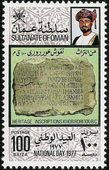 Visibility: public Image owner: none postage 11/18/1977 100b multi issue=National Day 1977 d=Heritage - Inscriptions Khor Rori 100 BC wmk=crown & CA spiral perf=13.75 Crops No visible images cropped from this one. Measurements Resolution is unknown. Source Source name: Colnect File URL: http://i.colnect.net/b/1890/724/Heritage---Inscriptions-Khor-Rori-100-BC.jpg Uploaded March 9, 2014, 7:07 pm by Stan Shebs |