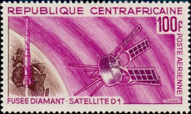 Visibility: public Image owner: none airmail 11/14/1966 100fr multi issue=Launching of Satellite D1 unwmk Crops No visible images cropped from this one. Measurements Resolution is unknown. Source Source name: Colnect File URL: http://i.colnect.net/images/b/1054/106/D1-satellite-launch-rocket-and-Diamond.jpg Uploaded August 21, 2014, 9:47 pm by Stan Shebs |
