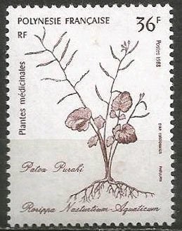 Visibility: public Image owner: none postage 10/18/1988 36fr dt=medicinal plants (1988 French Polynesia) unwmk Crops No visible images cropped from this one. Measurements Resolution is unknown. Source Source name: Colnect File URL: http://i.colnect.net/b/1885/241/Rorippa-nasturtium-aquaticum.jpg Uploaded March 10, 2014, 4:41 pm by Stan Shebs |