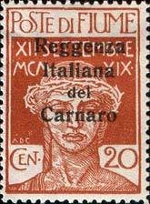 Visibility: public Image owner: none postage 11/20/1920 20c brnorg issue=Reggenza d=head of Fiume ovpt=Reggenza//Italiana//del//Carnaro oc=blk on=issue=occupation 1st-20c Crops No visible images cropped from this one. Measurements Resolution is unknown. Source Source name: Colnect File URL: http://i.colnect.net/b/1937/116/Overprint--Reggenza-Italiana-del-Carnaro-.jpg Uploaded March 12, 2014, 4:29 pm by Stan Shebs |
