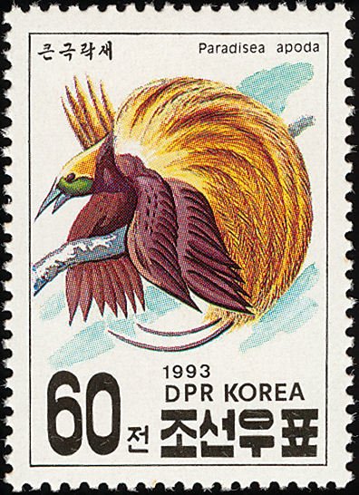 Visibility: public Image owner: none postage 5/29/1993 60ch multi issue=Indopex '93 dt=birds (1993 North Korea) d=Paradisea apoda (1993) unwmk perf=12 Crops No visible images cropped from this one. Measurements Resolution is unknown. Source Source name: Colnect File URL: http://i.colnect.net/b/1614/826/Greater-Bird-of-paradise-Paradisaea-apoda-apoda.jpg Uploaded March 14, 2014, 7:35 pm by Stan Shebs |