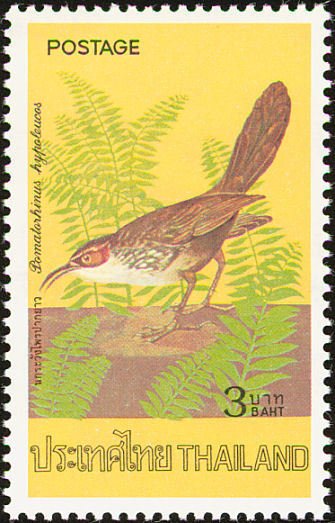 Visibility: public Image owner: none postage 4/2/1976 3b multi dt=birds (1976 Thailand) d=Pomatorhinus hypoleucos wmk=wavy lines (Thailand) perf=12.5 Crops No visible images cropped from this one. Measurements Resolution is unknown. Source Source name: Colnect File URL: http://i.colnect.net/b/2022/356/Large-Scimitar-Babbler-Pomatorhinus-hypoleucos.jpg Uploaded March 15, 2014, 2:27 pm by Stan Shebs |