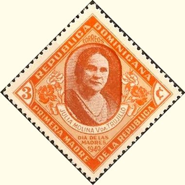 Visibility: public Image owner: none postage 5/26/1940 3c multi issue=Mother's Day 1940 d=Julia Molina Trujillo unwmk perf=11.5 Crops No visible images cropped from this one. Measurements Resolution is unknown. Source Source name: Colnect File URL: http://i.colnect.net/b/1933/427/Julia-Molina-mother-of-president-Trujilo.jpg Uploaded March 17, 2014, 3:02 pm by Stan Shebs |