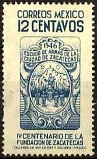 Visibility: public Image owner: none postage 9/1/1946 12c prusbl issue=Zacatecas 400th d=Arms of Zacatecas wmk=GOBIERNO MEXICANO & eagle perf=10x10.5 Crops No visible images cropped from this one. Measurements Resolution is unknown. Source Source name: Colnect File URL: http://i.colnect.net/b/2001/049/Arms-of-Zacatecas.jpg Uploaded March 25, 2014, 1:58 pm by Stan Shebs |