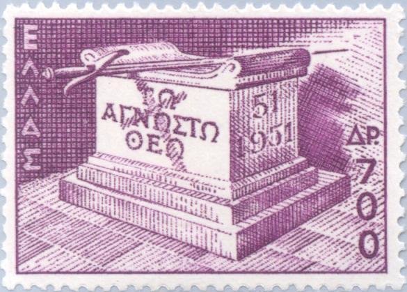Visibility: public Image owner: none postage 6/15/1951 700d issue=St Paul preaching 1900th d=sword on altar wmk=crowns Crops No visible images cropped from this one. Measurements Resolution is unknown. Source Source name: Colnect File URL: http://i.colnect.net/images/b/168/813/Visit-of-St-Paul-to-Athens---Altar--quot-To-the-unknown-God-quot-.jpg Uploaded August 21, 2014, 10:47 pm by Stan Shebs |