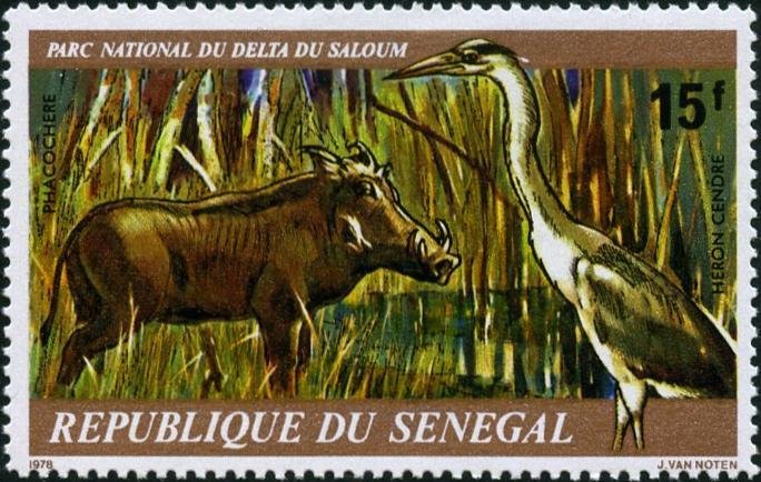 Visibility: public Image owner: none postage 4/22/1978 15fr multi dt=Animals of Saloum Delta National Park d=Phacochoerus aethiopicus, Ardea cinerea unwmk perf=13.5 Crops No visible images cropped from this one. Measurements Resolution is unknown. Source Source name: Colnect File URL: http://i.colnect.net/b/2048/431/Warthog-Phacochoerus-africanus-Grey-Heron-Ardea-cinerea.jpg Uploaded April 1, 2014, 3:46 am by Stan Shebs |
