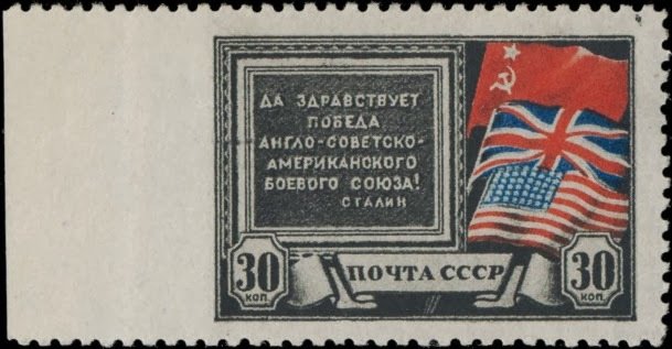 Visibility: public Image owner: none postage 11/1943 30k multi issue=Three-Power Conference d=Flags of US Britain & USSR unwmk perf=12 Crops No visible images cropped from this one. Measurements Resolution is unknown. Source Source name: Colnect File URL: http://i.colnect.net/b/1923/179/Flags-of-US-Britain-and-USSR.jpg Uploaded April 1, 2014, 6:23 pm by Stan Shebs |