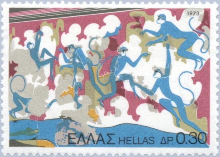 Visibility: public Image owner: none postage 3/30/1973 30l multi issue=Santorini archaeological finds wmk=crowns Crops No visible images cropped from this one. Measurements Resolution is unknown. Source Source name: Colnect File URL: http://i.colnect.net/b/172/723/-Blue-Apes--fresco-Thera-Santorini.jpg Uploaded August 21, 2014, 11:43 pm by Stan Shebs |