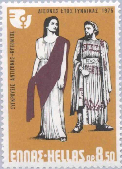 Visibility: public Image owner: none postage 9/29/1975 8.50d issue=International Women's Year d=Confrontation of Antigone with Creon wmk=crowns perf=13x14 Crops No visible images cropped from this one. Measurements Resolution is unknown. Source Source name: Colnect File URL: http://i.colnect.net/b/173/244/Confrontation-of-Antigone-with-Creon.jpg Uploaded August 21, 2014, 11:44 pm by Stan Shebs |