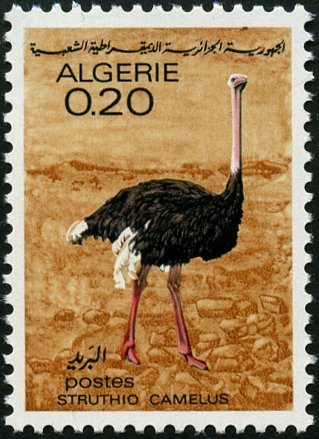 Visibility: public Image owner: none postage 6/24/1967 20c multi dt=animals (1967 Algeria) unwmk Crops No visible images cropped from this one. Measurements Resolution is unknown. Source Source name: Colnect File URL: http://i.colnect.net/b/1548/201/Ostrich-Struthio-camelus-.jpg Uploaded May 13, 2014, 10:14 pm by Stan Shebs |