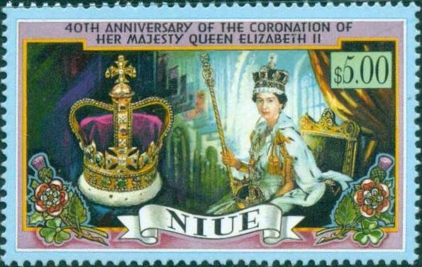 Visibility: public Image owner: none postage 6/2/1993 $5 multi issue=40th Anniversary of the Coronation of Queen Elizabeth II d=Queen Elizabeth II & the Royal Crown unwmk Crops No visible images cropped from this one. Measurements Resolution is unknown. Source Source name: Colnect File URL: http://i.colnect.net/b/2096/829/Queen-Elizabeth-II-and-the-Royal-Crown.jpg Uploaded May 14, 2014, 4:06 am by Stan Shebs |