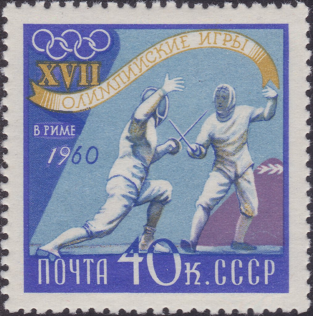 Visibility: public Image owner: none postage 8/1/1960 40k multi issue=Olympics 1960 d=fencing (1960 Russia) unwmk perf=12 Crops No visible images cropped from this one. Measurements Resolution is unknown. Source Source name: Colnect File URL: http://i.colnect.net/b/1864/004/Fencing.jpg Uploaded May 19, 2014, 7:17 pm by Stan Shebs |