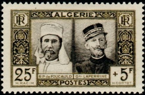 Visibility: public Image owner: none semipostal 8/21/1950 25+5fr olgrn&dkvio issue=50th Anniversary of the French in the Sahara d=R. P. de Foucauld and Gen. Laperrine unwmk Crops No visible images cropped from this one. Measurements Resolution is unknown. Source Source name: Colnect File URL: http://i.colnect.net/b/783/521/Père-de-Foucauld---général-Laperrine.jpg Uploaded August 21, 2014, 11:57 pm by Stan Shebs |