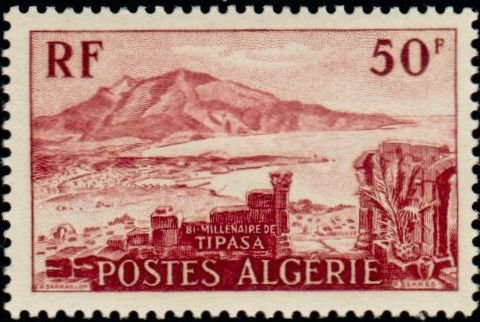 Visibility: public Image owner: none postage 5/31/1955 50fr brncar issue=Tipasa 2000th unwmk Crops No visible images cropped from this one. Measurements Resolution is unknown. Source Source name: Colnect File URL: http://i.colnect.net/b/697/085/Chenoua-Mountain-and-Tipasa.jpg Uploaded August 22, 2014, 12:06 am by Stan Shebs |
