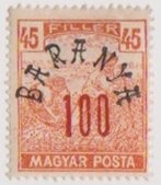 Type: stamp Issuer: Serbian occupation of Hungary Date: 1919 Denom: 100f