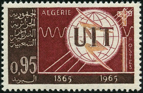 Visibility: public Image owner: none postage 9/19/1965 95c issue=ITU 100th d=ITU emblem (1965 Algeria) unwmk Crops No visible images cropped from this one. Measurements Resolution is unknown. Source Source name: Colnect File URL: http://i.colnect.net/b/583/827/International-Telecommunications-Union.jpg Uploaded August 22, 2014, 1:33 am by Stan Shebs |