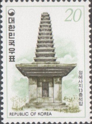 Visibility: public Image owner: none postage 11/20/1978 20w multi dt=Stone Pagodas d=Jeonghye-sa Temple wmk=winged circle Crops No visible images cropped from this one. Measurements Resolution is unknown. Source Source name: Colnect File URL: http://i.colnect.net/b/1922/805/Jeonghye-sa-Temple.jpg Uploaded May 29, 2014, 12:55 pm by Stan Shebs |