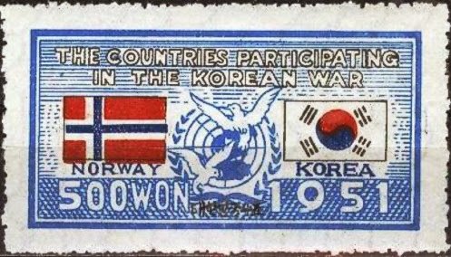 Visibility: public Image owner: none postage 500wn bl dt=flags of country & Korea & UN emblem & doves d=flag of Norway & flag of Korea Crops No visible images cropped from this one. Measurements Resolution is unknown. Source Source name: Colnect File URL: http://i.colnect.net/images/b/1910/254/Norway--amp--Korean-Flags.jpg Uploaded May 29, 2014, 12:58 pm by Stan Shebs |