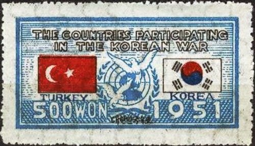 Visibility: public Image owner: none postage 500wn bl dt=flags of country & Korea & UN emblem & doves d=flag of Turkey & flag of Korea Crops No visible images cropped from this one. Measurements Resolution is unknown. Source Source name: Colnect File URL: http://i.colnect.net/images/b/1910/266/Turkey--amp--Korean-Flags.jpg Uploaded May 29, 2014, 12:58 pm by Stan Shebs |