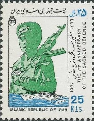 Visibility: public Image owner: none postage 9/22/1987 25r multi issue=7th Anniversary of the Start of the Iran-Iraq War wmk=Islamic Republic inscription perf=13.5x13 Crops No visible images cropped from this one. Measurements Resolution is unknown. Source Source name: Colnect File URL: http://i.colnect.net/images/b/1985/666/Soldier-speedboat-helicopter.jpg Uploaded May 31, 2014, 6:32 pm by Stan Shebs |