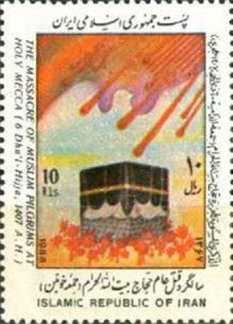 Visibility: public Image owner: none postage 7/22/1988 10r multi issue=1st Anniversary of the Mekka Massacre d=Blood rain on the holy Kaaba Mecca wmk=Islamic Republic inscription perf=13 Crops No visible images cropped from this one. Measurements Resolution is unknown. Source Source name: Colnect File URL: http://i.colnect.net/images/b/2120/029/Blood-rain-on-the-holy-Kaaba-Mecca.jpg Uploaded May 31, 2014, 9:52 pm by Stan Shebs |
