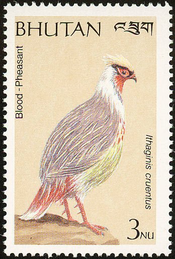 Visibility: public Image owner: none postage 11/22/1989 3nu multi dt=birds (1989 Bhutan) unwmk Crops No visible images cropped from this one. Measurements Resolution is unknown. Source Source name: Colnect File URL: http://i.colnect.net/b/1720/382/Blood-Pheasant-nbsp-Ithaginis-cruentus.jpg Uploaded June 6, 2014, 7:35 pm by Stan Shebs |