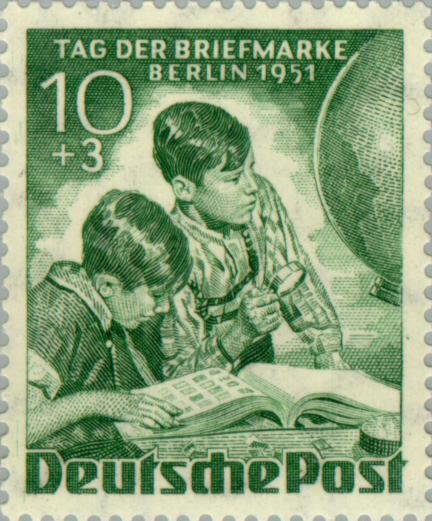 Visibility: public Image owner: none semipostal 10/7/1951 10+3pf dkgrn issue=Stamp Day 1951 d=Boys with stamp album & globe Crops No visible images cropped from this one. Measurements Resolution is unknown. Source Source name: Colnect File URL: http://i.colnect.net/images/b/154/799/Boys-with-stamp-album-globe.jpg Uploaded August 22, 2014, 3:44 pm by Stan Shebs |