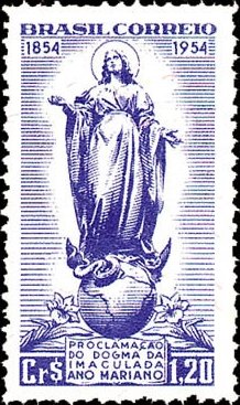 Visibility: public Image owner: none postage 9/8/1954 1.20cr bl issue=100th Anniversary of the Proclamation of the Dogma of the Immaculate Conception d=Our Lady of Aparecida unwmk perf=11.5x11 Crops No visible images cropped from this one. Measurements Resolution is unknown. Source Source name: Colnect File URL: http://i.colnect.net/b/695/319/Madonna.jpg Uploaded August 22, 2014, 3:49 pm by Stan Shebs |