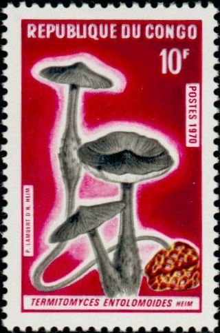 Visibility: public Image owner: none postage 3/31/1970 10fr multi dt=mushrooms (1970) d=Termitomyces entolomoides unwmk Crops No visible images cropped from this one. Measurements Resolution is unknown. Source Source name: Colnect File URL: http://i.colnect.net/b/2095/240/Termitomices-entomoloides.jpg Uploaded June 19, 2014, 10:37 pm by Stan Shebs |
