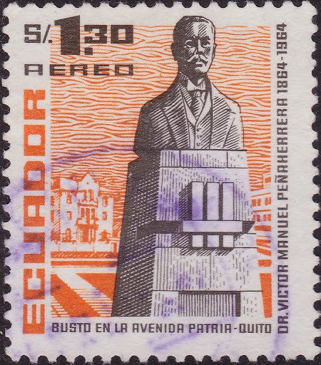 Visibility: public Image owner: none airmail 12/29/1967 1.30s yelorg&blk issue=100th Anniversary of the Birth of Pena Herrera / 100th Anniversary of Central University of Ecuador unwmk Crops No visible images cropped from this one. Measurements Resolution is unknown. Source Source name: Colnect File URL: http://i.colnect.net/images/b/1951/999/DrVictor-Manuel-Penaherrera-Monument-Quito.jpg Uploaded June 22, 2014, 12:00 am by Stan Shebs |
