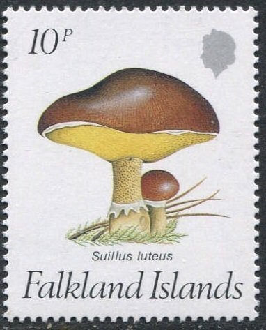 Visibility: public Image owner: none postage 9/14/1987 10p multi dt=Fungi (1987 Falkland Islands) d=Suillus luteus (1987) wmk=crown & script CA spiral perf=14.25 Crops No visible images cropped from this one. Measurements Resolution is unknown. Source Source name: Colnect File URL: http://i.colnect.net/images/b/1737/841/Suillus-Luteus.jpg Uploaded June 22, 2014, 2:00 pm by Stan Shebs |