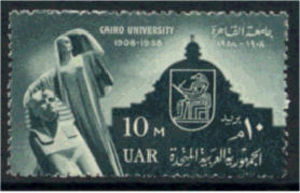 Visibility: public Image owner: none postage 12/21/1958 10m dkgrn issue=Cairo University 50th wmk=eagle & Misr perf=13x13.5 Crops No visible images cropped from this one. Measurements Resolution is unknown. Source Source name: Colnect (old) File URL: http://i.colnect.net/images/f/601/485/50th-Anniversary-of-Cairo-University.jpg Uploaded October 19, 2012, 3:14 am by Stan Shebs |