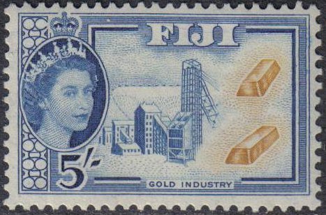Visibility: public Image owner: none postage 10/1/1956 5sh issue=Elizabeth II pictorials d=gold industry & Queen Elizabeth II wmk=mult crown & script CA Crops No visible images cropped from this one. Measurements Resolution is unknown. Source Source name: Colnect File URL: http://i.colnect.net/images/b/997/609/Gold-industry.jpg Uploaded August 22, 2014, 4:37 pm by Stan Shebs |