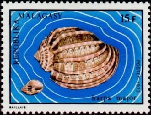 Visibility: public Image owner: none postage 4/5/1973 15fr multi dt=Marine Snails (1973) d=Harpa major (1973) unwmk Crops No visible images cropped from this one. Measurements Resolution is unknown. Source Source name: Colnect File URL: http://i.colnect.net/b/2066/935/Large-Harp-Harpa-major.jpg Uploaded June 30, 2014, 7:40 pm by Stan Shebs |