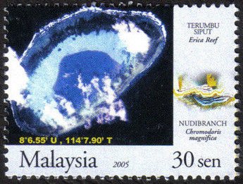 Visibility: public Image owner: none postage 12/22/2005 30sen multi dt=Malaysian Islands & Marine Life d=Erica Reef & nudibranch wmk=SPM multiple Crops No visible images cropped from this one. Measurements Resolution is unknown. Source Source name: Colnect File URL: http://i.colnect.net/images/b/2034/123/Erica-Reef-Nudibranch.jpg Uploaded June 30, 2014, 10:16 pm by Stan Shebs |