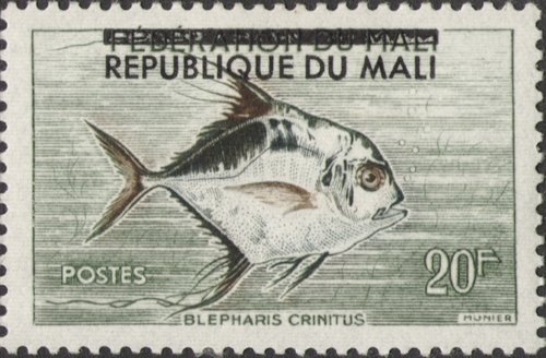 Visibility: public Image owner: none postage 1/15/1961 20fr dt=fishes (1960 Mali Federation) d=Blepharis crinitus ovpt=bar//REPUBLIQUE DU MALI oc=blk on=issuer=Mali Federation-1960-20fr-dt=fishes unwmk Crops No visible images cropped from this one. Measurements Resolution is unknown. Source Source name: Colnect File URL: http://i.colnect.net/b/2009/480/African-Pompano-Alectis-crinitus.jpg Uploaded July 1, 2014, 3:19 pm by Stan Shebs |