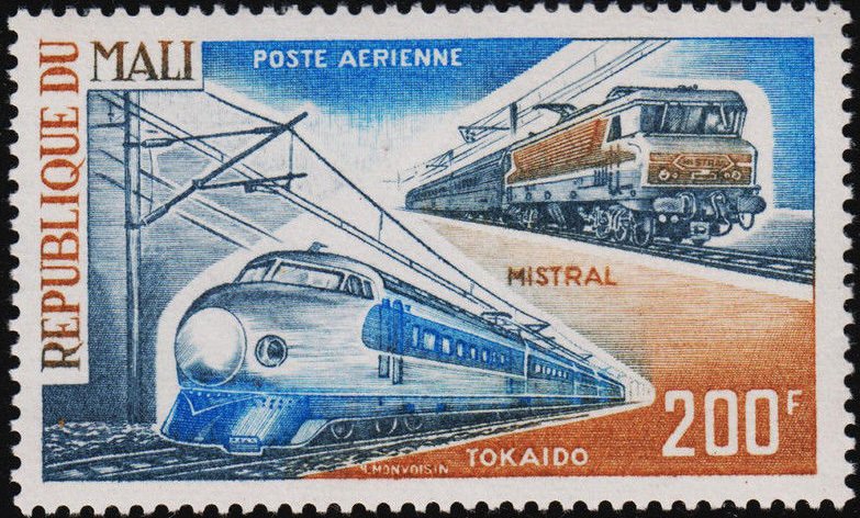 Visibility: public Image owner: none airmail 10/8/1973 200fr multi dt=Famous Locomotives d="Mistral" Express (France) and "Hikari" unwmk perf=13 Crops No visible images cropped from this one. Measurements Resolution is unknown. Source Source name: Colnect File URL: http://i.colnect.net/images/b/2149/773/Mistral-and-Tokaido-1970.jpg Uploaded July 1, 2014, 3:30 pm by Stan Shebs |