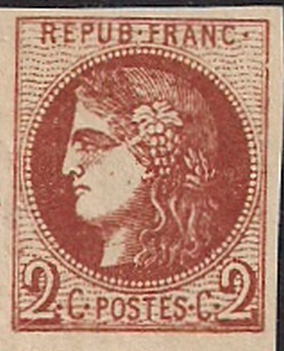 Visibility: public Image owner: none postage 11/13/1870 2c redbrn issue=1870 Bordeaux d=Ceres (1870 a) unwmk imperf Crops No visible images cropped from this one. Measurements Resolution is unknown. Source Source name: Colnect File URL: http://i.colnect.net/images/b/919/584/Ceres.jpg Uploaded August 22, 2014, 4:46 pm by Stan Shebs |