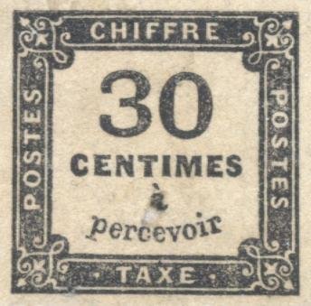 Visibility: public Image owner: none postage due 30c blk issue=1859 due d=numeral (1859 France) unwmk perf=13 Crops No visible images cropped from this one. Measurements Resolution is unknown. Source Source name: Colnect File URL: http://i.colnect.net/b/146/947/Tax--Chiffre-Taxe-.jpg Uploaded October 19, 2012, 6:15 pm by Stan Shebs |